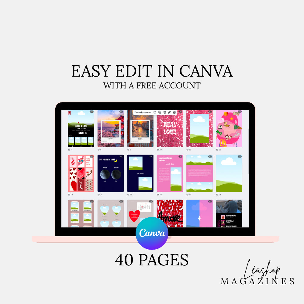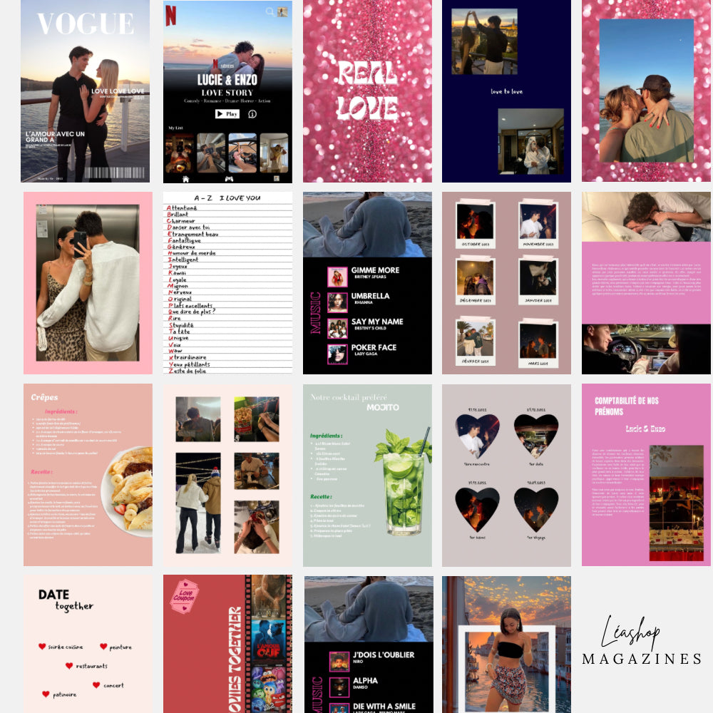Un magazine plein de vie pour immortaliser vos aventures de couple : escapades, fous rires, projets et moments complices. Facile à personnaliser sur Canva, il vous permet d’ajouter photos, anecdotes et petits clins d’œil pour un souvenir digital fun et authentique.