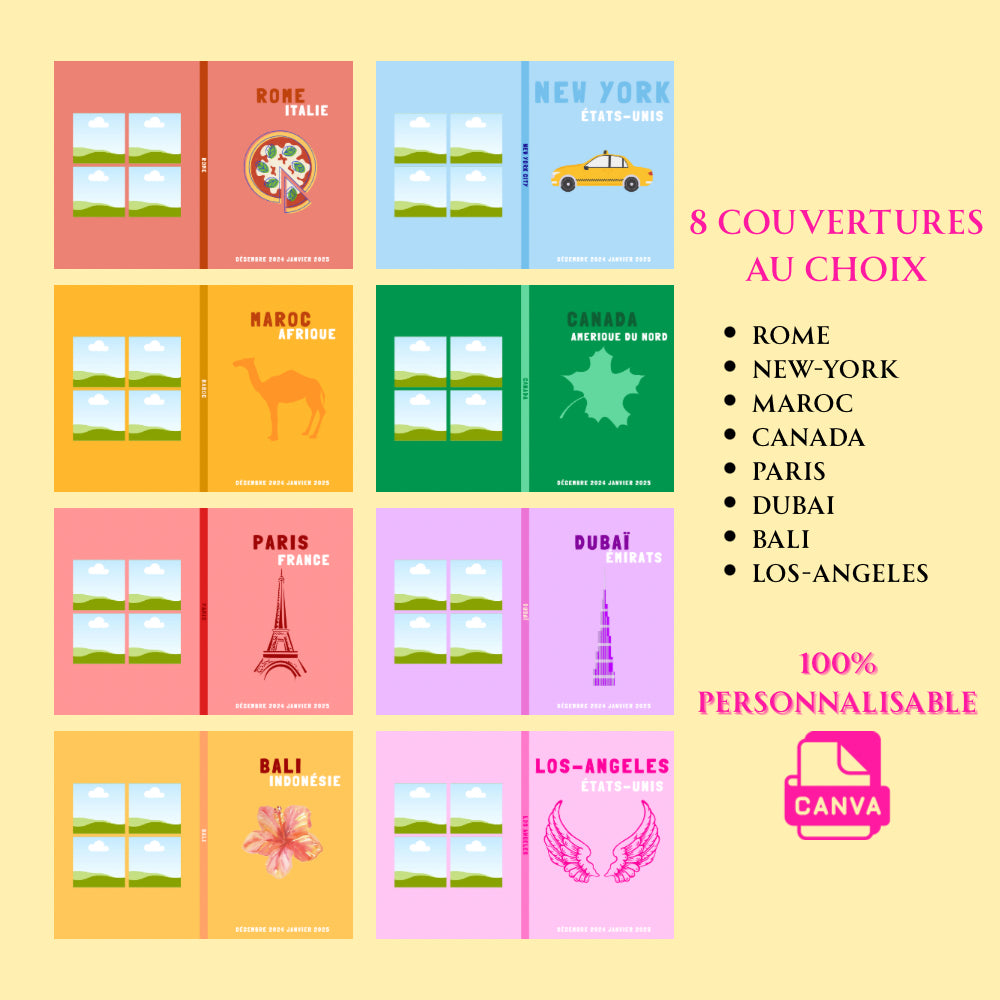 Immortalisez vos plus beaux souvenirs de voyage avec ce magazine élégant et simple à personnaliser. Chaque page te permet d’ajouter photos, notes et anecdotes pour raconter votre aventure ensemble.